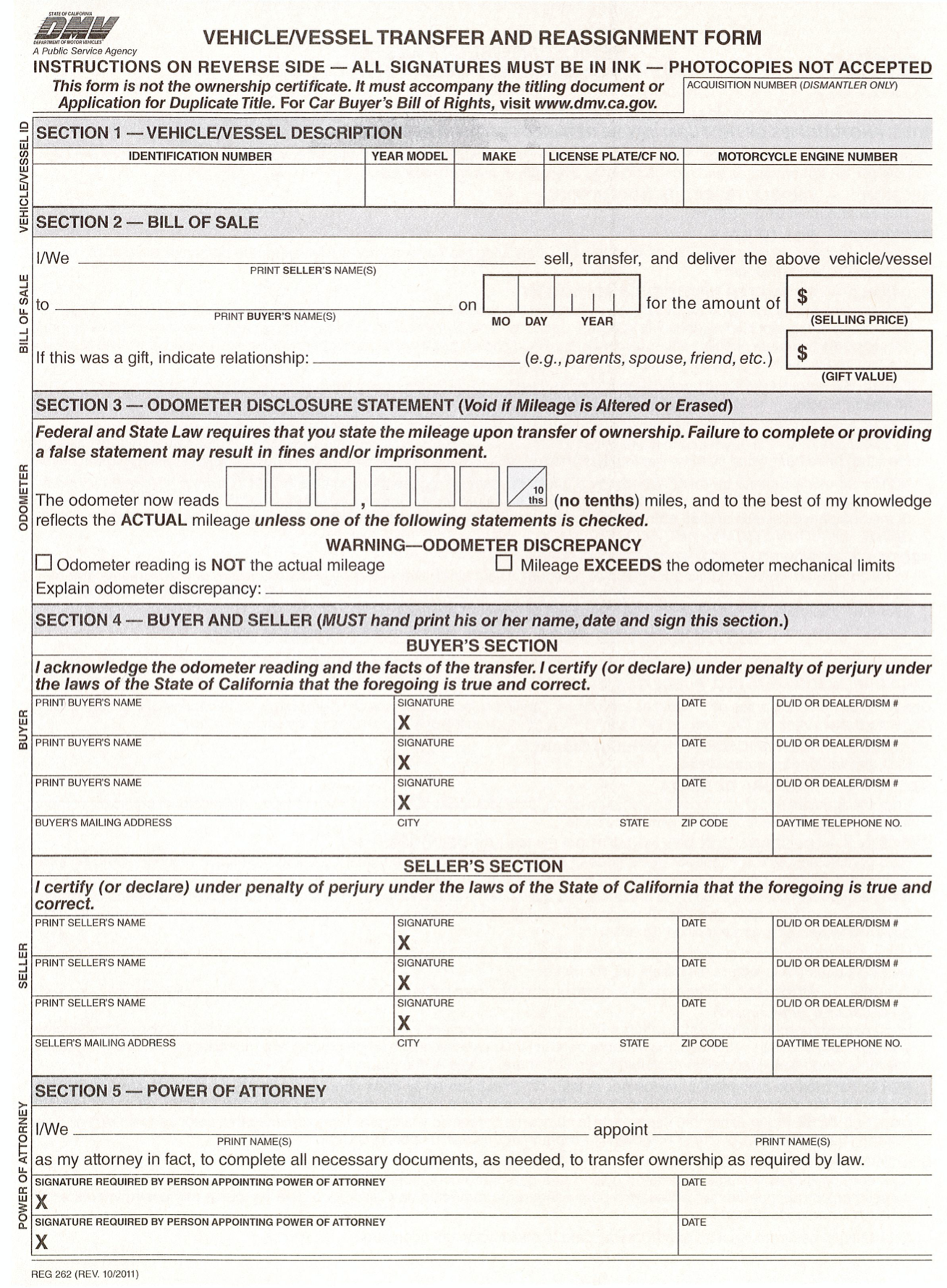 VEHICLE TRANSFER AND REASSIGNMENT FORM (Reg262)