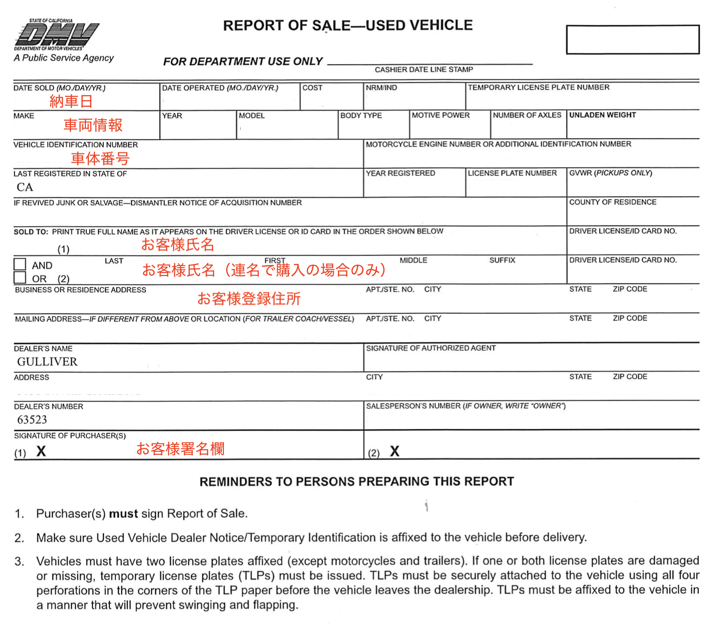 CA州で車を購入する際に必要な書類、説明、注意点まとめ。(案内版)