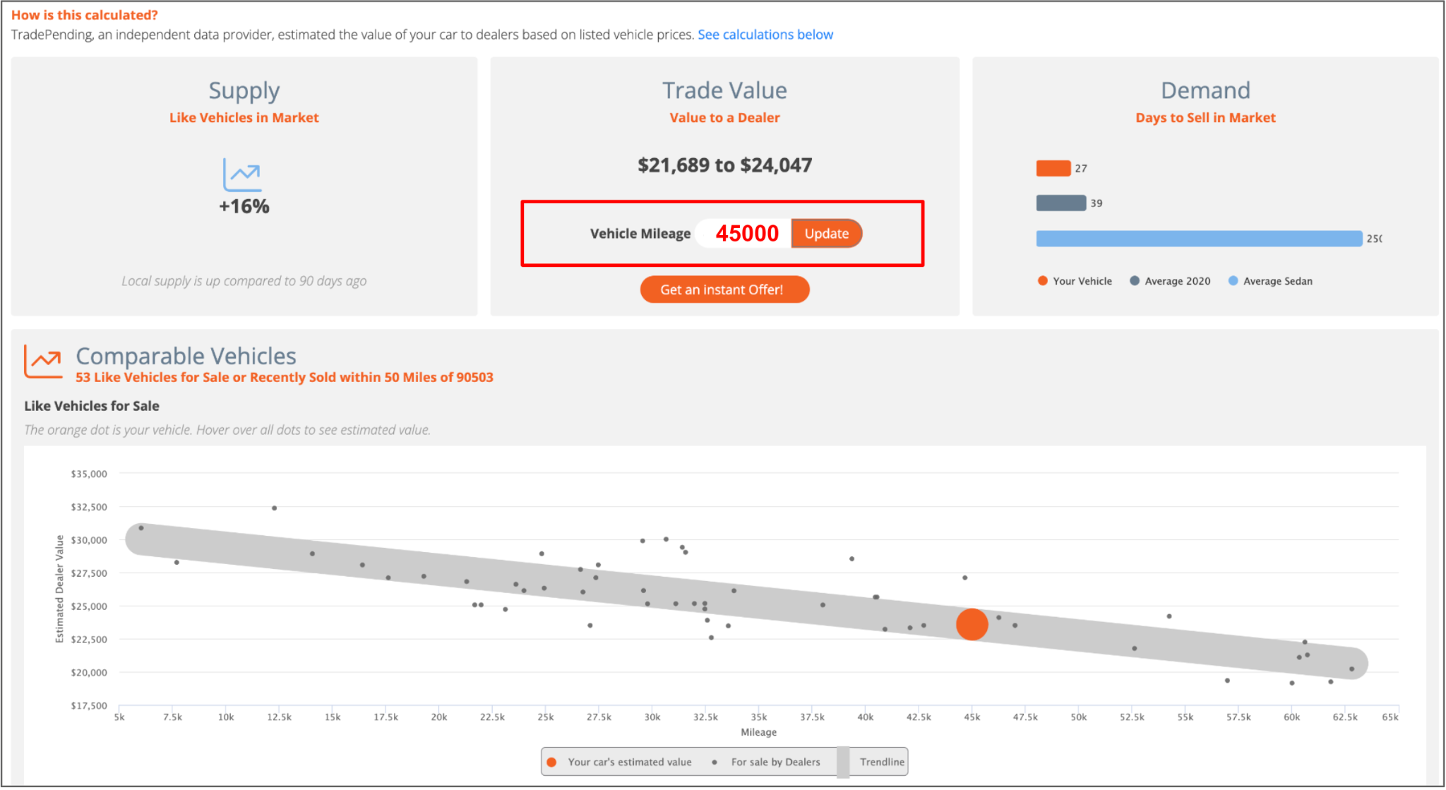 (より詳しい金額が知りたい場合は、Get an instant Offer!をクリックしてください。)