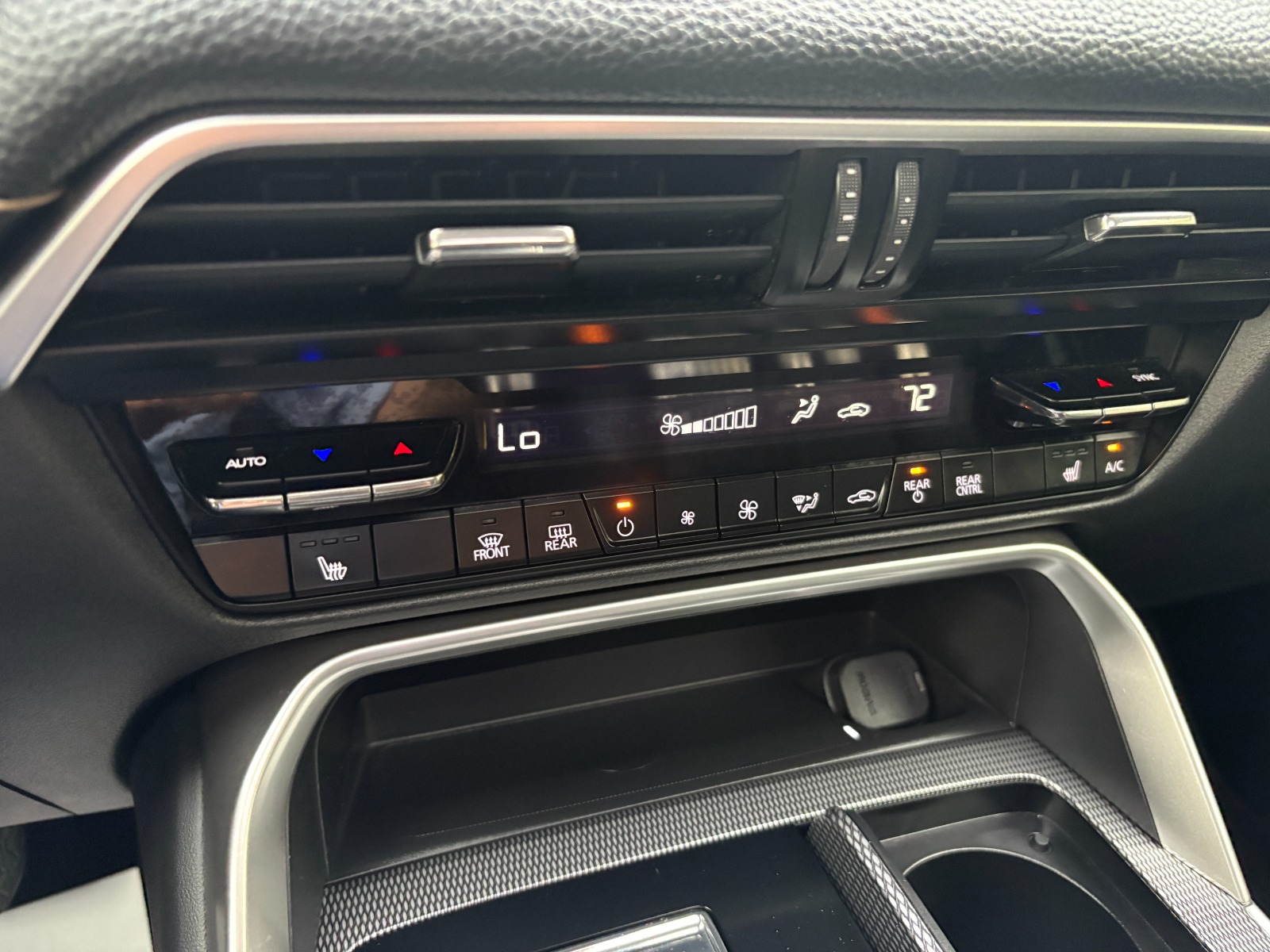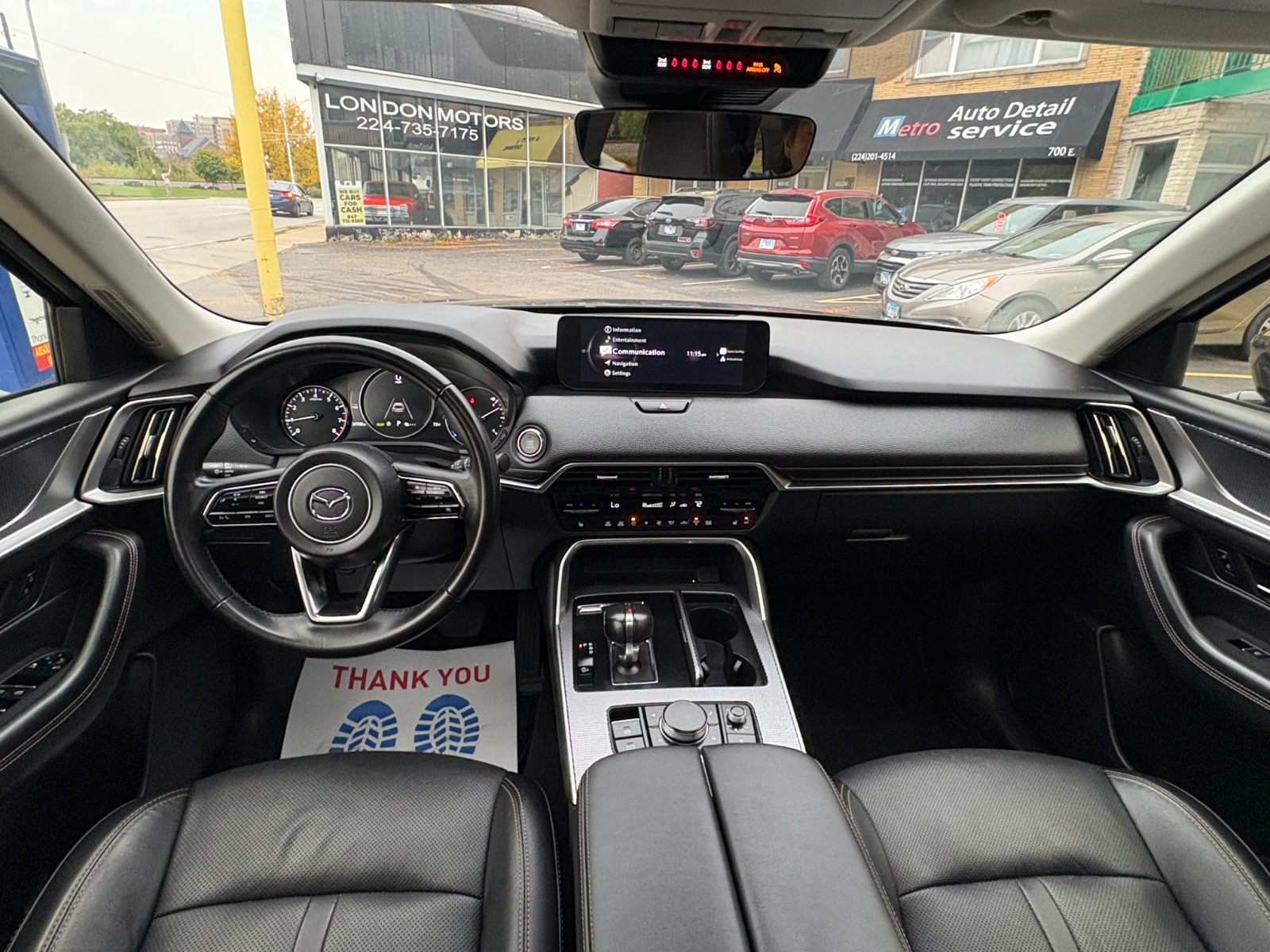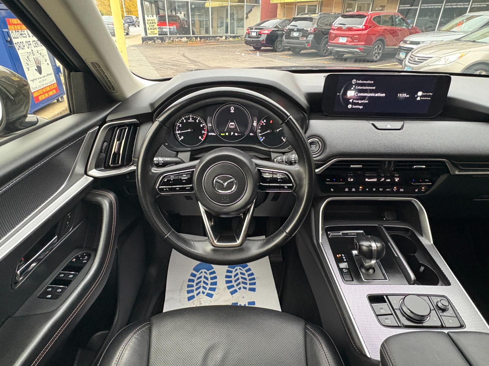 Engine: 3.3L e-SKYACTIV G I-6 Turbo -inc: i-Stop|Transmission: SKYACTIV Drive 8-Speed Automatic -inc: manual shift mode|Automatic Full-Time All-Wheel|Electric Power-Assist Speed-Sensing Steering|4-Wheel Disc Brakes w/4-Wheel ABS, Front And Rear Vented Discs, Brake Assist, Hill Descent Control, Hill Hold Control and Electric Parking Brake|Brake Actuated Limited Slip Differential|Lithium Ion (li-Ion) Traction Battery 0.33 kWh Capacity|Wheels: 19 x 8.5J Aluminum Alloy -inc: silver metallic finish|Tires: 265/55R19|Compact Spare Tire Mounted Inside Under Cargo|Express Open/Close Sliding And Tilting Glass 1st Row Sunroof w/Power Sunshade|Body-Colored Power Heated Side Mirrors w/Manual Folding and Turn Signal Indicator|Fixed Rear Window w/Wiper and Defroster|Deep Tinted Glass|Rain Detecting Variable Intermittent Wipers|Lip Spoiler|Auto On/Off Projector Beam Led Low/High Beam Daytime Running Auto-Leveling Auto High-Beam Headlamps w/Delay-Off|Headlights-Automatic Highbeams|Manual Tilt/Telescoping Steering Column|MAZDA CONNECT Mobile Hotspot Internet Access|Leather Steering Wheel|Cruise Control w/Steering Wheel Controls|Mazda Radar Cruise Control (MRCC) with Stop & Go|Interior Trim -inc: Leatherette Instrument Panel Insert, Simulated Wood Door Panel Insert, Simulated Wood Console Insert and Chrome/Metal-Look Interior Accents|Driver And Passenger Visor Vanity Mirrors w/Driver And Passenger Illumination, Driver And Passenger Auxiliary Mirror|Full Carpet Floor Covering -inc: Carpet Front And Rear Floor Mats|Head-Up Display|Immobilizer|Dual Stage Driver And Passenger Seat-Mounted Side Airbags|Blind Spot Monitoring (BSM) Blind Spot|Rear Cross Traffic Alert (RCTA)|Collision Mitigation-Front|Driver Monitoring-Alert|Tire Specific Low Tire Pressure Warning|Dual Stage Driver And Passenger Front Airbags|Curtain 1st, 2nd And 3rd Row Airbags|Airbag Occupancy Sensor|Driver And Passenger Knee Airbag|Rear Child Safety Locks|Back-Up Camera