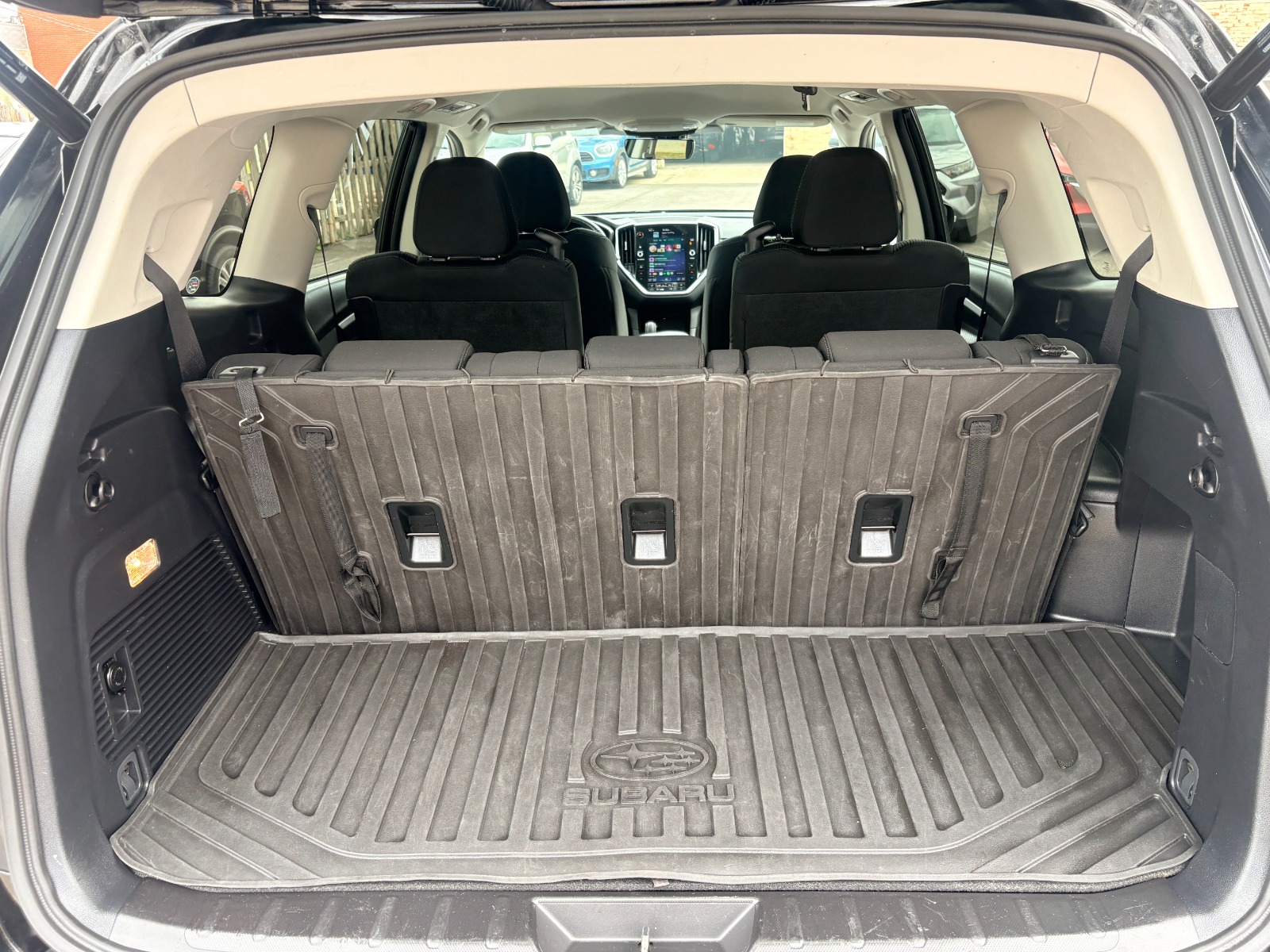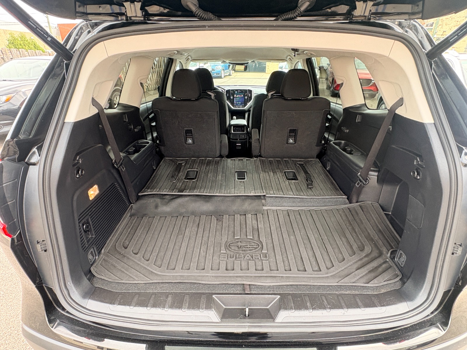 Engine: 2.4L DOHC 16 Valve 4-Cylinder Turbo -inc: twin scroll intercooled turbocharger, Dual Active Valve Control System (DAVCS) variable valve timing and Electronic Throttle Control (ETC)|Full-Time All-Wheel|Electric Power-Assist Speed-Sensing Steering|Brake Actuated Limited Slip Differential|Wheels: 18 x 7.5 J Gray Alloy w/Machine Finish -inc: wheel center cap w/Subaru 6 star logo|Tires: 245/60R18 105H AS|Compact Spare Tire Stored Underbody w/Crankdown|Body-Colored Power Heated Side Mirrors w/Manual Folding and Turn Signal Indicator|Fixed Rear Window w/Wiper and Defroster|Deep Tinted Glass|Variable Intermittent Wipers w/Heated Wiper Park|Lip Spoiler|Auto On/Off Projector Beam Led Low/High Beam Daytime Running Auto-Leveling Directionally Adaptive Auto High-Beam Headlamps w/Delay-Off|Headlights-Automatic Highbeams|Manual Tilt/Telescoping Steering Column|Fixed 60-40 Bench Premium Cloth 3rd Row Seat Front, Manual Recline, Manual Fold Into Floor, 3 Manual and Adjustable Head Restraints|Leather Steering Wheel|Cruise Control w/Steering Wheel Controls|EyeSight Adaptive Cruise Control|Driver And Passenger Visor Vanity Mirrors w/Driver And Passenger Illumination, Driver And Passenger Auxiliary Mirror|Full Carpet Floor Covering -inc: Carpet Front And Rear Floor Mats|Perimeter Alarm|Cruise Control-Steering Assist|Dual Stage Driver And Passenger Seat-Mounted Side Airbags|Collision Mitigation-Front|Driver Monitoring-Alert|Blind Spot Detection (BSD) Blind Spot|Tire Specific Low Tire Pressure Warning|Dual Stage Driver And Passenger Front Airbags|Curtain 1st, 2nd And 3rd Row Airbags|Airbag Occupancy Sensor|Driver Knee Airbag|Rear Child Safety Locks|Back-Up Camera w/Washer