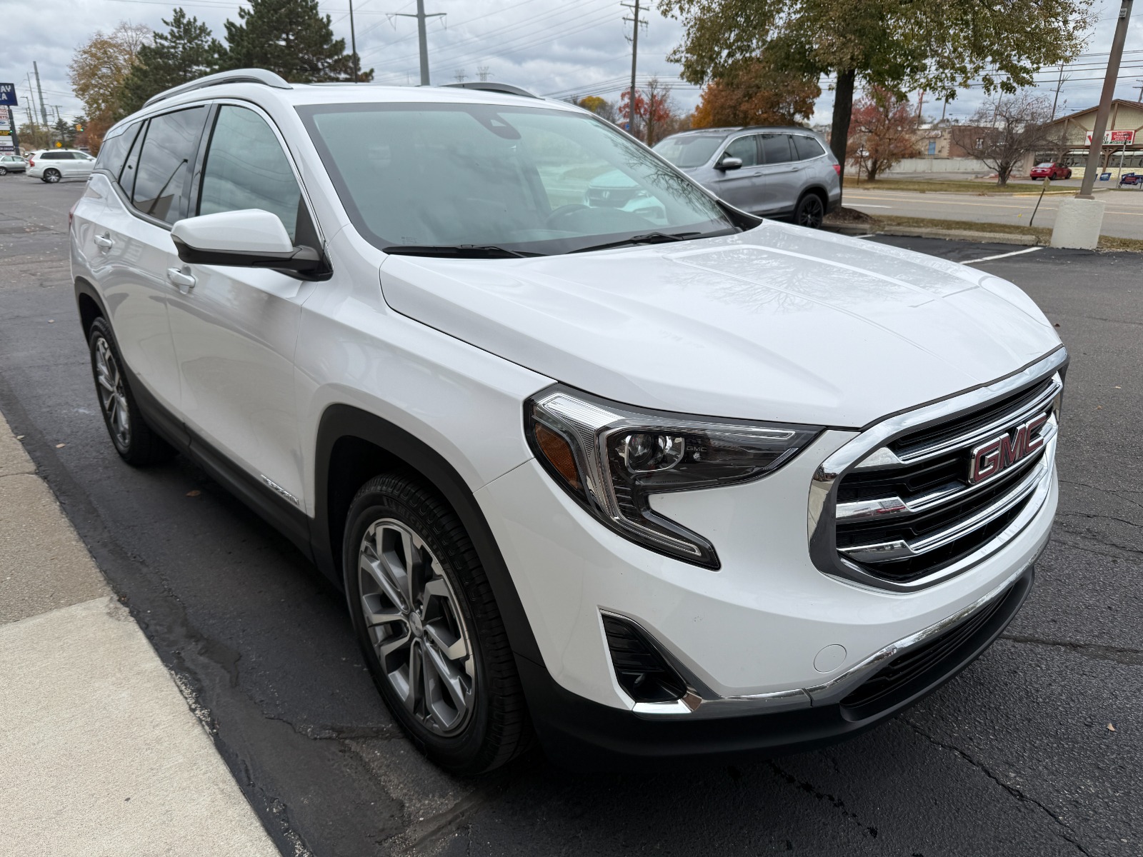 2021年式GMC Terrain SLTは、洗練されたデザインが魅力のSUVです。StabiliTrakやHDリアビューカメラで安全をサポート。前席シートヒーター、デュアルゾーンオートエアコンで快適性も抜群。都市部25MPG、高速道路28MPGの優れた燃費も特徴です。