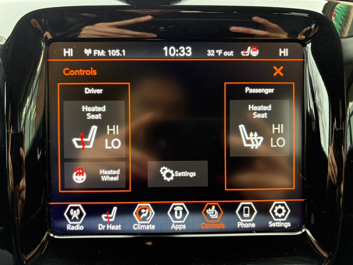 Engine: 2.4L I4 Zero Evap M-Air w/ESS|Automatic Full-Time Four-Wheel Drive|Electric Power-Assist Steering|Body-Colored Power Heated Side Mirrors w/Manual Folding and Turn Signal Indicator|Fixed Rear Window w/Wiper and Defroster|Deep Tinted Glass|Lip Spoiler|Front Fog Lamps|Radio w/Seek-Scan, Clock and Steering Wheel Controls|Uconnect w/Bluetooth Wireless Phone Connectivity|60-40 Folding Bench Front Facing Fold Forward Seatback Rear Seat|Manual Tilt/Telescoping Steering Column|Heated Leather/Metal-Look Steering Wheel|Dual Zone Front Automatic Air Conditioning|Day-Night Auto-Dimming Rearview Mirror|Driver And Passenger Visor Vanity Mirrors w/Driver And Passenger Illumination, Driver And Passenger Auxiliary Mirror|Full Carpet Floor Covering -inc: Carpet Front And Rear Floor Mats|Immobilizer|Perimeter Alarm|Dual Stage Driver And Passenger Seat-Mounted Side Airbags|Tire Specific Low Tire Pressure Warning|Dual Stage Driver And Passenger Front Airbags|Curtain 1st And 2nd Row Airbags|Airbag Occupancy Sensor|Driver Knee Airbag|Rear Child Safety Locks|ParkView Back-Up Camera
