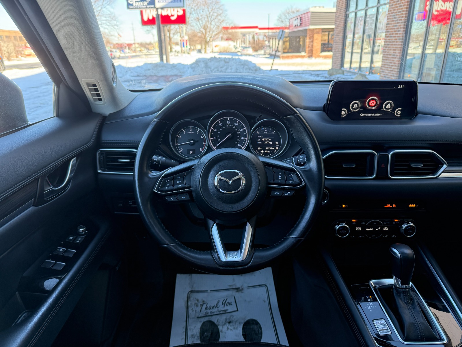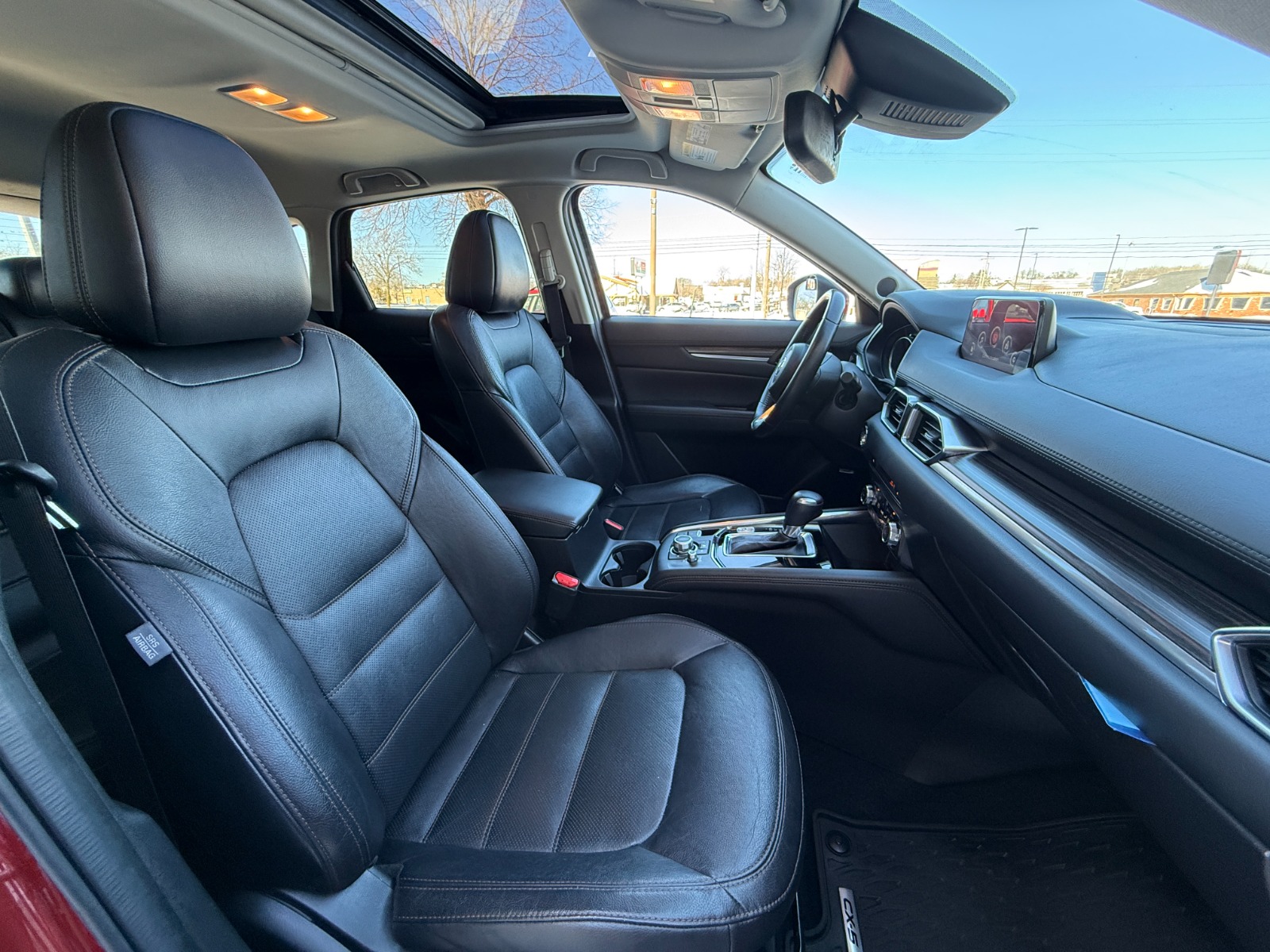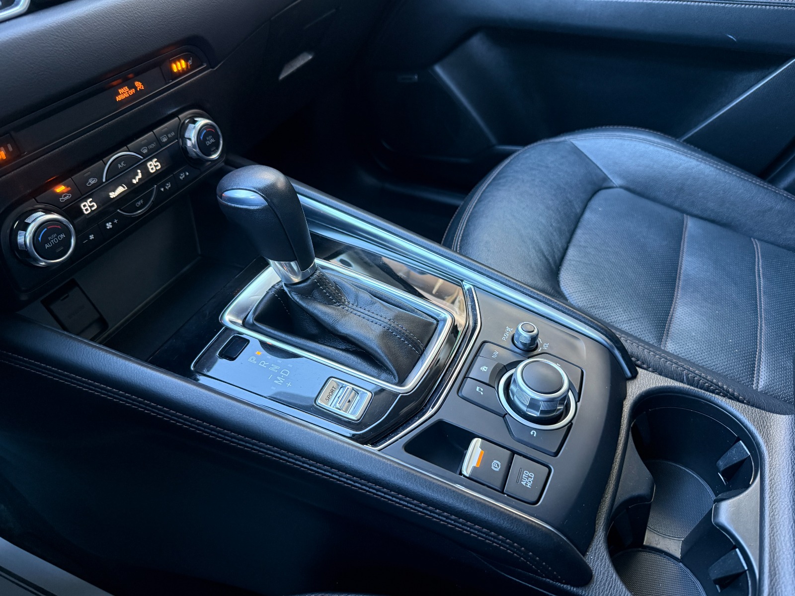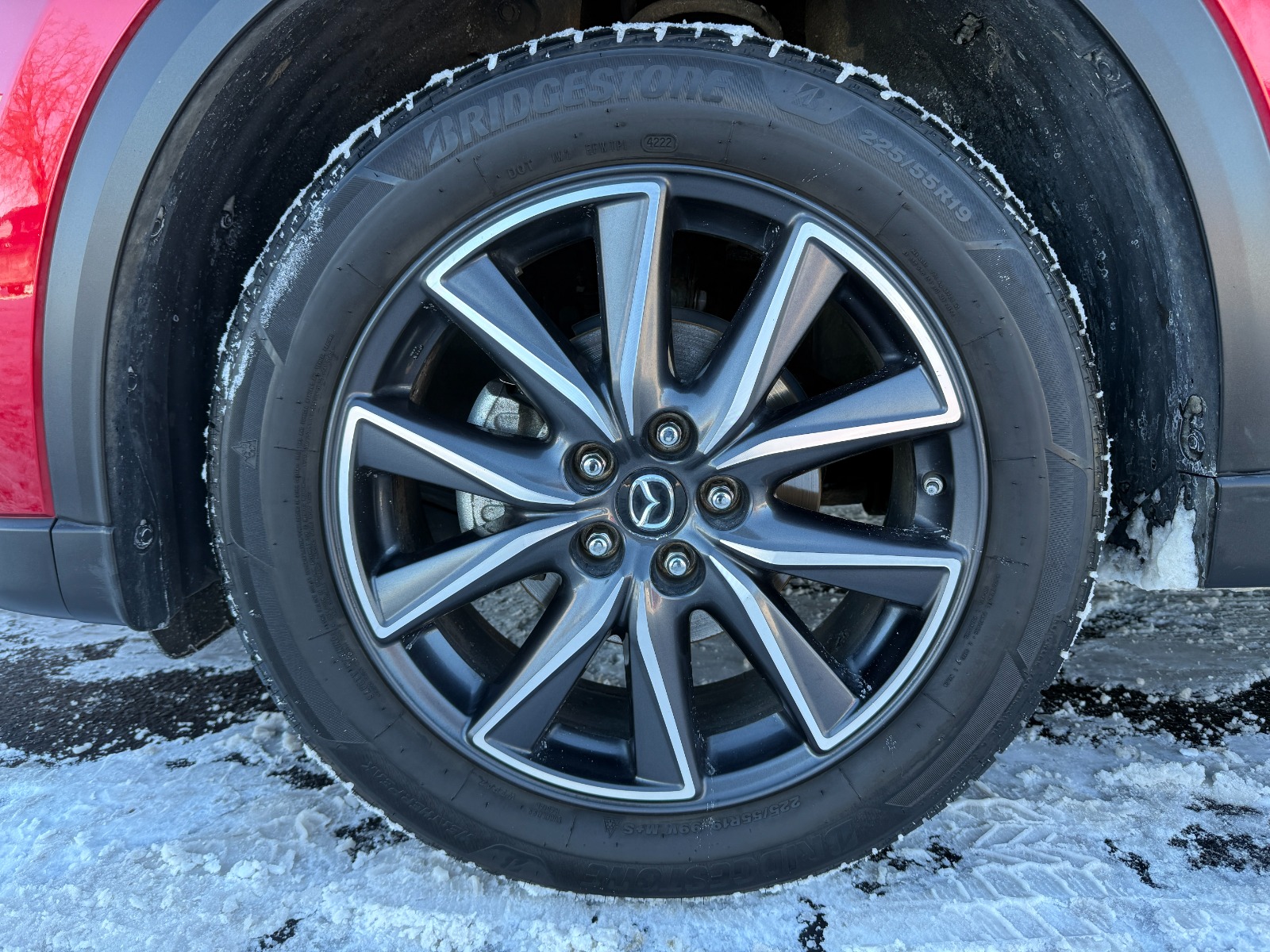 Engine: 2.5L SKYACTIV-G DOHC 16-Valve 4-Cylinder|Transmission: 6-Speed SKYACTIV-DRIVE Automatic -inc: manual-mode and sport function|Automatic Full-Time All-Wheel|Electric Power-Assist Speed-Sensing Steering|4-Wheel Disc Brakes w/4-Wheel ABS, Front Vented Discs, Brake Assist, Hill Hold Control and Electric Parking Brake|Wheels: 19 x 7J Aluminum Alloy -inc: dark graphite w/machine finished face|Tires: P225/55R19|Compact Spare Tire Mounted Inside Under Cargo|Express Open Sliding And Tilting Glass 1st Row Sunroof w/Sunshade|Body-Colored Power Heated Side Mirrors w/Manual Folding and Turn Signal Indicator|Fixed Rear Window w/Fixed Interval Wiper, Heated Wiper Park and Defroster|Deep Tinted Glass|Rain Detecting Variable Intermittent Wipers|Lip Spoiler|Auto On/Off Projector Beam Led Low/High Beam Daytime Running Auto-Leveling Directionally Adaptive Auto High-Beam Headlamps w/Delay-Off|Headlights-Automatic Highbeams|Heated Front Sport Shape Seats -inc: 8-way power adjustable driver's seat w/power lumbar support, and 6-way manual passenger seat|40-20-40 Folding Bench Front Facing Manual Reclining Fold Forward Seatback Rear Seat|Manual Tilt/Telescoping Steering Column|Leather/Metal-Look Steering Wheel|Homelink Garage Door Transmitter|Cruise Control w/Steering Wheel Controls|Distance Pacing|Dual Zone Front Automatic Air Conditioning|Driver And Passenger Visor Vanity Mirrors w/Driver And Passenger Illumination, Driver And Passenger Auxiliary Mirror|Day-Night Auto-Dimming Rearview Mirror|Mazda Navigation System|Engine Immobilizer|Dual Stage Driver And Passenger Seat-Mounted Side Airbags|Collision Mitigation-Front|Blind Spot Monitoring Blind Spot|Smart Brake Support and Rear Cross Traffic Alert|Low Tire Pressure Warning|Dual Stage Driver And Passenger Front Airbags|Curtain 1st And 2nd Row Airbags|Airbag Occupancy Sensor|Rear Child Safety Locks|Back-Up Camera