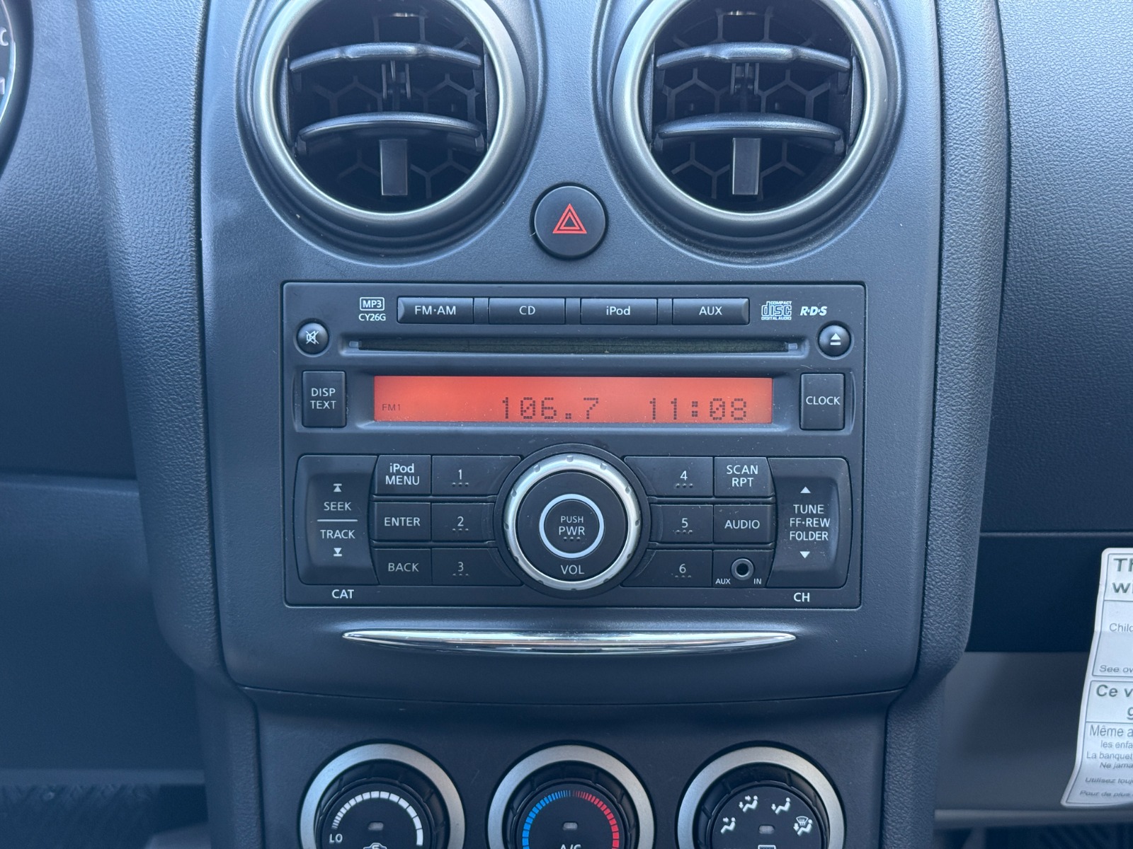 2.5L DOHC SMPI 16-valve I4 engine|Continuously variable transmission (CVT)|All wheel drive|Front tow hook|Speed-sensitive pwr rack & pinion steering|4-wheel vented disc brakes|16 steel wheels w/covers|P215/70R16 all-season tires|Temporary spare tire w/steel wheel|Body-color rear spoiler|Folding black pwr outside mirrors|Variable intermittent windshield wipers|AM/FM stereo w/CD player -inc: aux input jack, iPod interface system, (4) speakers|Front bucket seats -inc: 6-way manual driver seat, 4-way manual passenger seat, seatback pockets, adjustable active head restraints|60/40 split fold-down rear bench seat|Cloth seat trim|Manual tilt steering column|Trip computer|Pwr windows w/driver one-touch auto-down|Cruise control w/steering wheel controls|Security alarm system|Immobilizer key system|Front air conditioning w/in-cabin microfilter|Rear window defogger|(2) 12-volt pwr outlets|Dual illuminated visor vanity mirrors w/covers|Dual front map lights|4-wheel anti-lock brakes (ABS)|Electronic brake force distribution (EBD) & brake assist (BA)|Nissan advanced airbag system (AABS) -inc: driver/front passenger dual stage airbags, occupant sensor|Front seat-mounted side-impact airbags|Roof-mounted side curtain airbags for all rows w/rollover sensor|Child safety rear door locks|Tire pressure monitoring system