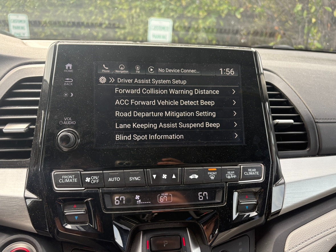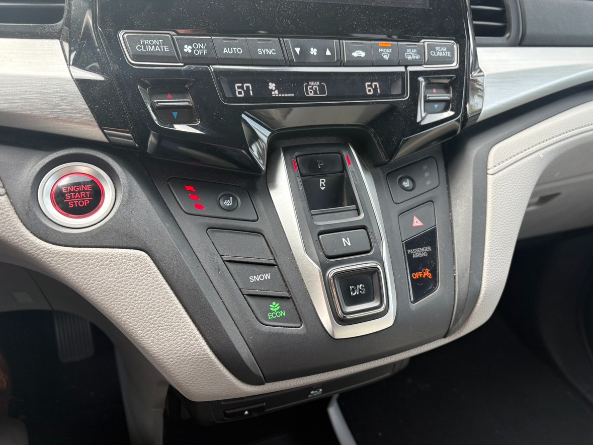 Engine: 3.5L V6 SOHC 24-Valve i-VTEC|Transmission: 9-Speed Automatic -inc: shift-by-wire (SBW) and paddle shifters|Front-Wheel Drive|Electric Power-Assist Speed-Sensing Steering|4-Wheel Disc Brakes w/4-Wheel ABS, Front Vented Discs, Brake Assist, Hill Hold Control and Electric Parking Brake|Tires: P235/60R18 103H AS|Compact Spare Tire Mounted Inside|Express Open/Close Sliding And Tilting Glass 1st Row Sunroof w/Sunshade|Body-Colored Power w/Tilt Down Heated Side Mirrors w/Manual Folding and Turn Signal Indicator|Fixed Rear Window w/Fixed Interval Wiper and Defroster|Deep Tinted Glass|Speed Sensitive Variable Intermittent Wipers|Lip Spoiler|Power Sliding Rear Doors|Power Liftgate Rear Cargo Access|Auto On/Off Projector Beam Halogen Daytime Running Auto High-Beam Headlamps w/Delay-Off|Front Fog Lamps|Headlights-Automatic Highbeams|Entertainment System w/Blu-Ray And Digital Media|Heated Front Bucket Seats -inc: driver's seat 12-way power adjustment w/4-way power lumbar support and 2-position memory and front passenger's seat 4-way power adjustment|Removable 40-20-40 Folding PlusOne Seat(TM) Split-Bench Front Facing Manual Reclining Fold Forward Seatback Rear Seat w/Manual Fore/Aft and Magic Slide 2nd-Row Seats Side-To-Side Sliding|Manual Tilt/Telescoping Steering Column|Fixed 60-40 Split-Bench Leatherette 3rd Row Seat Front, Manual Recline, Manual Fold Into Floor, 3 Manual and Adjustable Head Restraints|Leather Steering Wheel|Cruise Control w/Steering Wheel Controls|Distance Pacing|Driver And Passenger Visor Vanity Mirrors w/Driver And Passenger Illumination|Integrated Navigation System w/Voice Activation|Perimeter Alarm|Engine Immobilizer|Dual Stage Driver And Passenger Seat-Mounted Side Airbags|Blind Spot Information (BSI) System Blind Spot|Collision Mitigation Braking System and Rear Cross Traffic Alert|Collision Mitigation-Front|Tire Specific Low Tire Pressure Warning|Dual Stage Driver And Passenger Front Airbags|Curtain 1st, 2nd And 3rd Row Airbags|Airbag Occupancy Sensor|Driver And Passenger Knee Airbag|Rear Child Safety Locks|Back-Up Camera