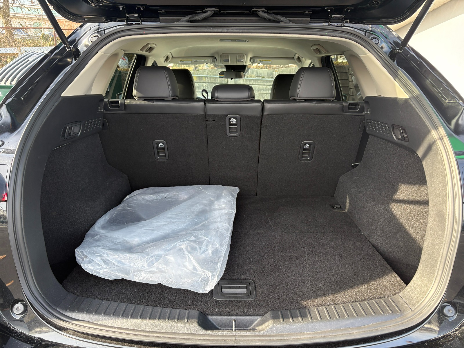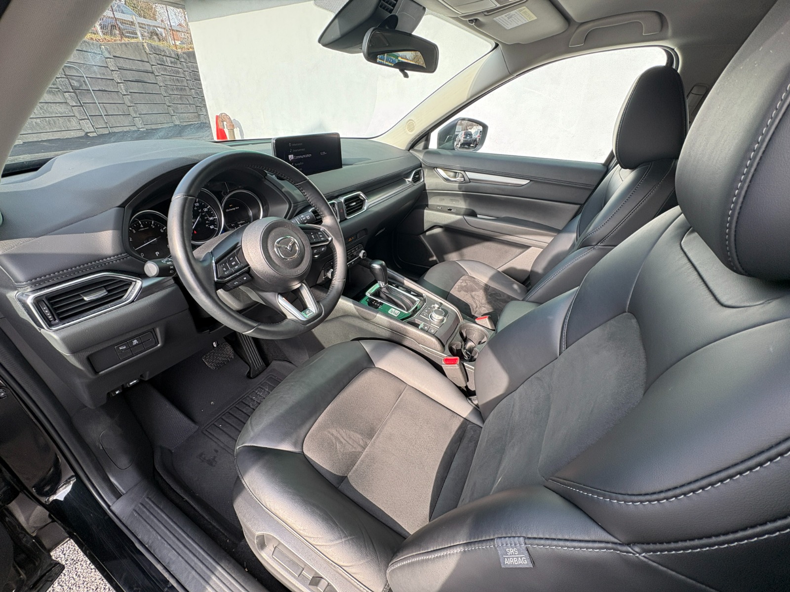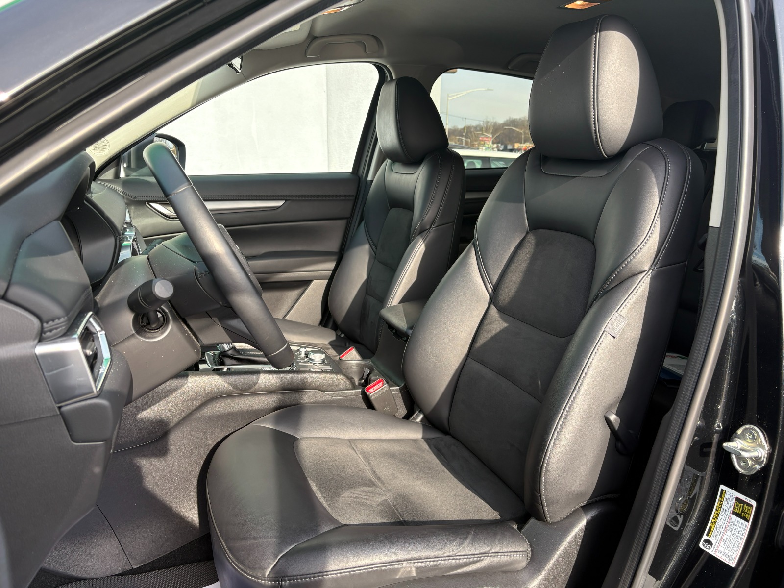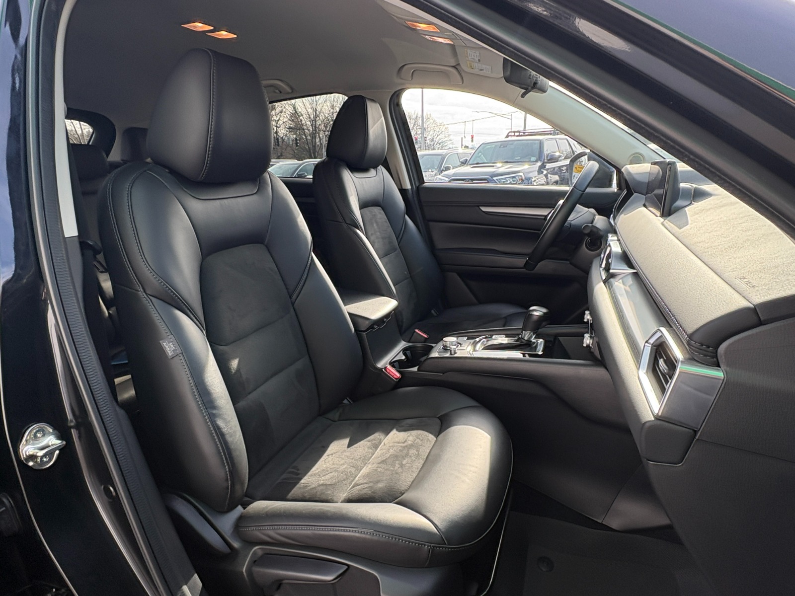 Engine: 2.5L SKYACTIV-G DOHC 16-Valve 4-Cylinder -inc: cylinder deactivation|Automatic Full-Time All-Wheel|Electric Power-Assist Speed-Sensing Steering|4-Wheel Disc Brakes w/4-Wheel ABS, Front Vented Discs, Brake Assist, Hill Hold Control and Electric Parking Brake|Brake Actuated Limited Slip Differential|Wheels: 17 x 7J Aluminum Alloy -inc: gray metallic finish|Tires: P225/65R17 AS|Compact Spare Tire Mounted Inside Under Cargo|Body-Colored Power Side Mirrors w/Manual Folding and Turn Signal Indicator|Fixed Rear Window w/Wiper and Defroster|Rain Detecting Variable Intermittent Wipers|Deep Tinted Glass|Lip Spoiler|Headlights-Automatic Highbeams|Auto On/Off Projector Beam Led Low/High Beam Daytime Running Auto-Leveling Auto High-Beam Headlamps w/Delay-Off|Heated Front Bucket Seats -inc: 3 level heat adjustment, 6-way power driver's seat w/lumbar support and 6-way manual passenger seat|40-20-40 Folding Split-Bench Front Facing Manual Reclining Fold Forward Seatback Rear Seat|Manual Tilt/Telescoping Steering Column|Leather/Metal-Look Steering Wheel|Remote Releases -Inc: Mechanical Cargo Access and Mechanical Fuel|Cruise Control w/Steering Wheel Controls|Mazda Radar Cruise Control (MRCC)|Dual Zone Front Automatic Air Conditioning|Driver And Passenger Visor Vanity Mirrors w/Driver And Passenger Illumination, Driver And Passenger Auxiliary Mirror|Immobilizer|Dual Stage Driver And Passenger Seat-Mounted Side Airbags|Blind Spot Monitoring (BSM) Blind Spot|Rear Cross Traffic Alert (RCTA)|Collision Mitigation-Front|Low Tire Pressure Warning|Dual Stage Driver And Passenger Front Airbags|Curtain 1st And 2nd Row Airbags|Airbag Occupancy Sensor|Rear Child Safety Locks|Back-Up Camera