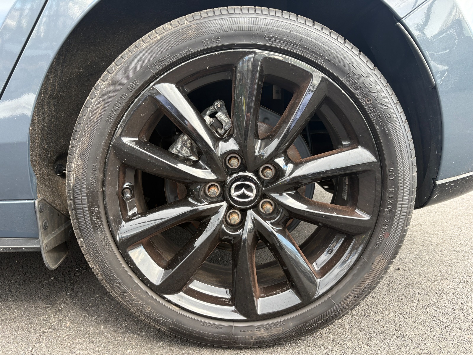 Engine: 2.5L SKYACTIV-G DOHC 16-Valve 4-Cylinder -inc: cylinder deactivation|Transmission: 6-Speed SKYACTIV-Drive Automatic -inc: Electronically-controlled, manual-shift and sport mode|Automatic Full-Time All-Wheel|Electric Power-Assist Speed-Sensing Steering|4-Wheel Disc Brakes w/4-Wheel ABS, Front Vented Discs, Brake Assist, Hill Hold Control and Electric Parking Brake|Tires: P215/45R18 All-Season|Compact Spare Tire Mounted Inside Under Cargo|Express Open/Close Sliding And Tilting Glass 1st Row Sunroof w/Sunshade|Black Power w/Tilt Down Heated Side Mirrors w/Manual Folding and Turn Signal Indicator|Fixed Rear Window w/Wiper and Defroster|Rain Detecting Variable Intermittent Wipers|Auto On/Off Projector Beam Led Low/High Beam Auto High-Beam Daytime Running Lights Preference Setting Headlamps w/Delay-Off|Headlights-Automatic Highbeams|60-40 Folding Bench Front Facing Fold Forward Seatback Rear Seat|Manual Tilt/Telescoping Steering Column|Leather Steering Wheel|Cruise Control w/Steering Wheel Controls|Mazda Radar Cruise Control (MRCC) with Stop & Go|Dual Zone Front Automatic Air Conditioning|Driver And Passenger Visor Vanity Mirrors w/Driver And Passenger Illumination, Driver And Passenger Auxiliary Mirror|Full Carpet Floor Covering -inc: Carpet Front And Rear Floor Mats|Rigid Cargo Cover|Immobilizer|Blind Spot Monitoring (BSM) Blind Spot|Rear Cross Traffic Alert (RCTA)|Collision Mitigation-Front|Driver Monitoring-Alert|Tire Specific Low Tire Pressure Warning|Dual Stage Driver And Passenger Front Airbags|Curtain 1st And 2nd Row Airbags|Airbag Occupancy Sensor|Mazda Connected Services Guest Driver Alert (3-year complimentary trial included)|Rear Child Safety Locks|Back-Up Camera