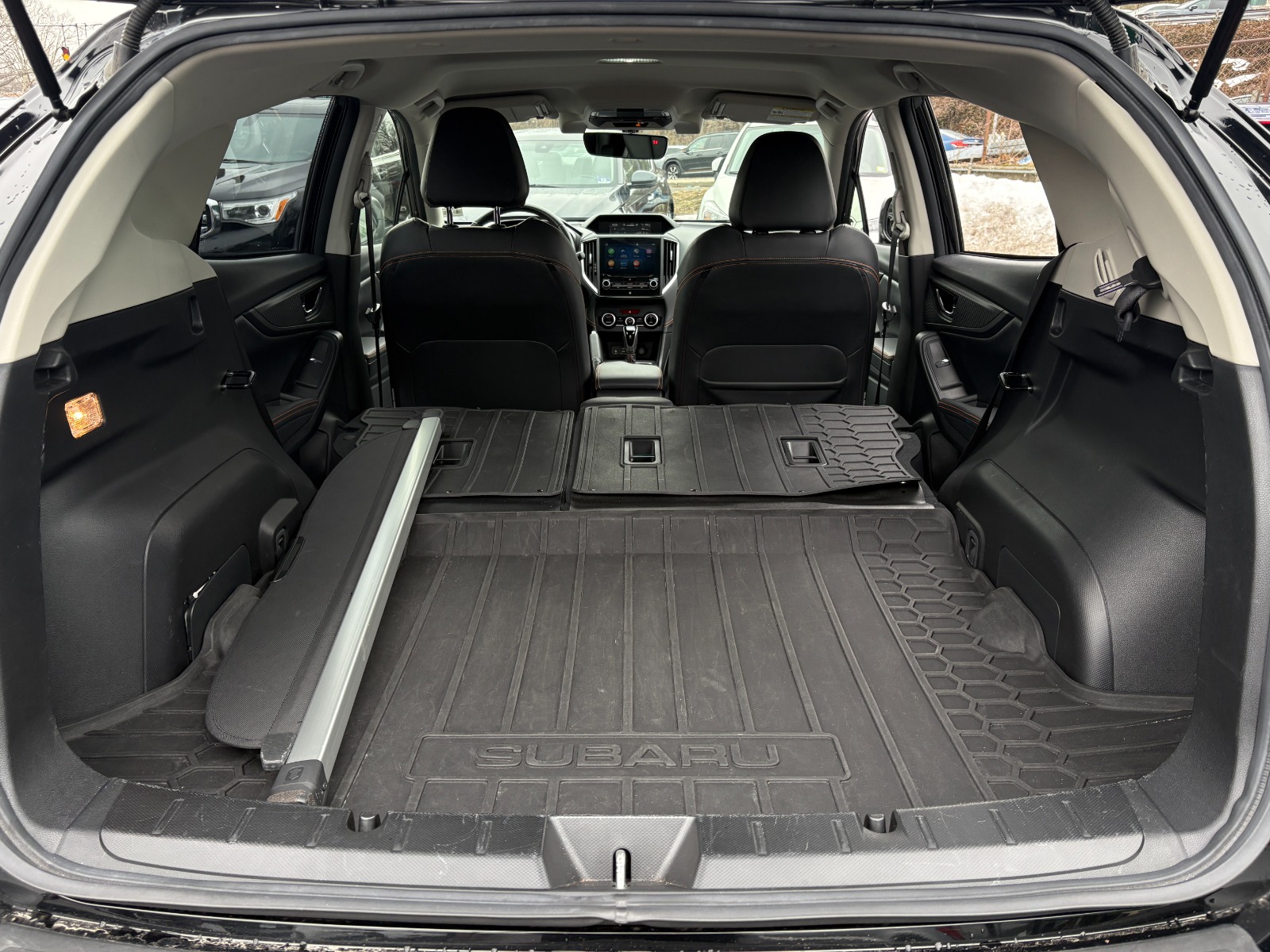 Engine: 2.5L DOHC|Transmission: Lineartronic CVT -inc: steering wheel paddle-shift control switches, 8-speed manual shift mode function, X-MODE, hill descent control (HDC), SI-DRIVE engine performance management: I and S mode and auto start-stop|Full-Time All-Wheel|Electric Power-Assist Speed-Sensing Steering|4-Wheel Disc Brakes w/4-Wheel ABS, Front Vented Discs, Brake Assist, Hill Descent Control and Hill Hold Control|Brake Actuated Limited Slip Differential|Tires: 225/55R18 98H AS|Compact Spare Tire Mounted Inside Under Cargo|Body-Colored Power Heated Side Mirrors w/Manual Folding and Turn Signal Indicator|Fixed Rear Window w/Wiper and Defroster|Deep Tinted Glass|Variable Intermittent Wipers w/Heated Wiper Park|Front Fog Lamps|Auto On/Off Projector Beam Led Low/High Beam Daytime Running Auto-Leveling Directionally Adaptive Auto High-Beam Headlamps|Headlights-Automatic Highbeams|Heated Front Bucket Seats -inc: 6-way power driver's seat, height adjustable driver's seat, front passenger seatback pocket and front seat height and tilt adjustable head restraints|60-40 Folding Bench Front Facing Fold Forward Seatback Rear Seat|Manual Tilt/Telescoping Steering Column|STARLINK (Subscription Required) Mobile Hotspot Internet Access|Leather/Metal-Look Steering Wheel|Remote Releases -Inc: Power Cargo Access and Mechanical Fuel|Cruise Control w/Steering Wheel Controls|EyeSight Advanced Adaptive Cruise Control|Voice Activated Automatic Air Conditioning|Driver And Passenger Visor Vanity Mirrors w/Driver And Passenger Illumination, Driver And Passenger Auxiliary Mirror|Full Carpet Floor Covering -inc: Carpet Front And Rear Floor Mats|Perimeter Alarm|Immobilizer|Lane Centering|Dual Stage Driver And Passenger Seat-Mounted Side Airbags|Collision Mitigation-Front|Driver Monitoring-Alert|Blind Spot Detection (BSD) Blind Spot|Reverse Automatic Braking|Tire Specific Low Tire Pressure Warning|Dual Stage Driver And Passenger Front Airbags|Curtain 1st And 2nd Row Airbags|Airbag Occupancy Sensor|Driver Knee Airbag|Rear Child Safety Locks