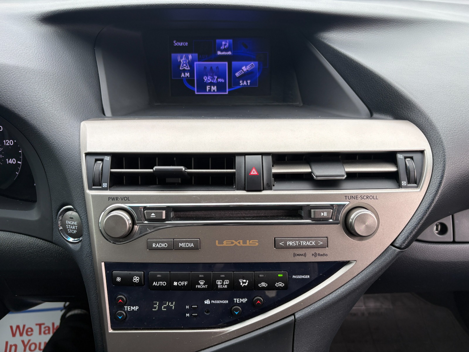 3.5L DOHC SFI 24-valve V6 engine -inc: dual variable valve timing w/intelligence (VVT-i)|6-Speed automatic electronically controlled transmission w/intelligence -inc: sequential shift, snow mode|Full-time all wheel drive|Active torque control -inc: variable torque split, manual-locking center differential|Independent MacPherson strut front suspension -inc: gas-pressurized shock absorbers, coil springs|Independent double wishbone rear suspension -inc: gas-pressurized shock absorbers, coil springs|Front/rear stabilizer bars|Electronic pwr steering|Pwr front ventilated & rear solid disc brakes|Tool kit|Compact spare tire|Rear spoiler|Rear bumper protection|Automatic on/off headlamps w/delay-off feature|Front fog lamps|LED brake lamps|Acoustic noise-reducing windshield glass|Water-repellent front door glass|UV-reducing glass on all windows|Rear privacy glass|Intermittent rear wiper/washer|Exterior lower door chrome plating|FM-diversity antenna|Shark-fin antenna|10-way pwr front bucket seats -inc: pwr lumbar, adjustable headrests, easy exit driver seat|Reclining/sliding rear 40/20/40 split one-touch fold-down seat -inc: adjustable headrests|Sliding front center console -inc: illuminated storage bin, dual pwr outlets, pass-through storage|Electroluminescent instrumentation|LCD multi-info display w/outside temp gauge|Organic light-emitting diode (OLED) multi-info display in gauge cluster|Pwr windows -inc: 1-touch auto up/down, jam protection, remote-linked opening|HomeLink programmable garage door opener|Electronic fuel-filler door release|Lexus personalized settings|Rear window defogger w/timer|Bird's-eye maple wood trim|Chrome inside door handles|Pull-out front door storage pockets|Electrochromic rearview mirror w/compass|Dual extendable illuminated vanity visors|Illuminated entry|Interior lighting -inc: dome light, foot lights, LED spot lights, LED illuminated glove box, door-mounted courtesy lights, front/rear map lights, cargo area light|Leather-wrapped shift knob|Dual front/rear assist grips|Front/rear cupholders|Front seatback pockets|Coat hooks|Rear storage compartment under cargo area floor|Tonneau cover|4-wheel anti-lock braking system (ABS) -inc: brake assist|Electronic brakeforce distribution|Smart stop technology brake override system|Side-impact door beams|Front/rear crumple zones|LED daytime running lights|Dual front advanced airbag supplemental restraint system (SRS) -inc: passenger twin-chamber airbag, crash severity & occupant detection sensors|Front/rear seat-mounted side-impact airbags|Front/rear side-curtain airbags w/roll sensor|Dual front knee airbags|Dual front seat active headrests w/whiplash protection|3-point seat belts -inc: pretensioners, force limiters, auto locking retractor for all passenger seating, emergency locking retractor for driver seat, front anchor height adjusters|Rear outboard child restraint seat tether anchor brackets|Child safety rear door locks|Tire pressure monitoring system|Collapsible steering column|Collapsible brake pedal|First aid kit